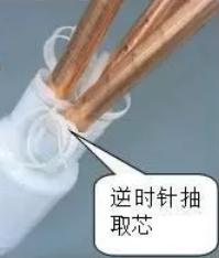 假设端部密封运用冷缩管来实现的,则分别逆时针拉出芯绳,使密封管缩短于预订方位。